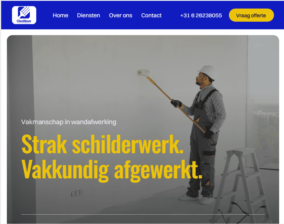 Voor wie kwalificeert bouw ik een gratis homepage demo op maat. Zo zeker ben ik dat je het niveau gaat zien, en niet meer terug wil naar wat je had. Eerst zien, dan geloven?