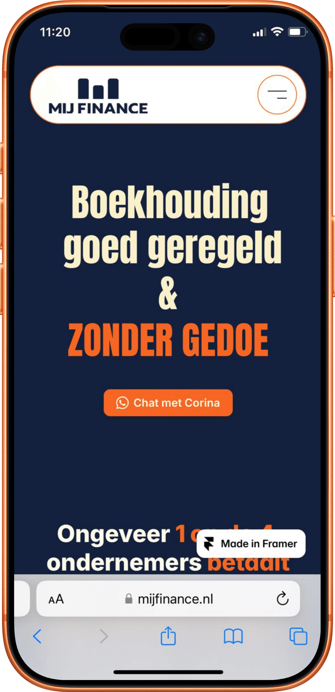 Mij Finance helpt ondernemers met hun boekhouding en financiële overzicht. Corina wilde een website die niet “standaard boekhouder” voelt, maar wél vertrouwen uitstraalt.